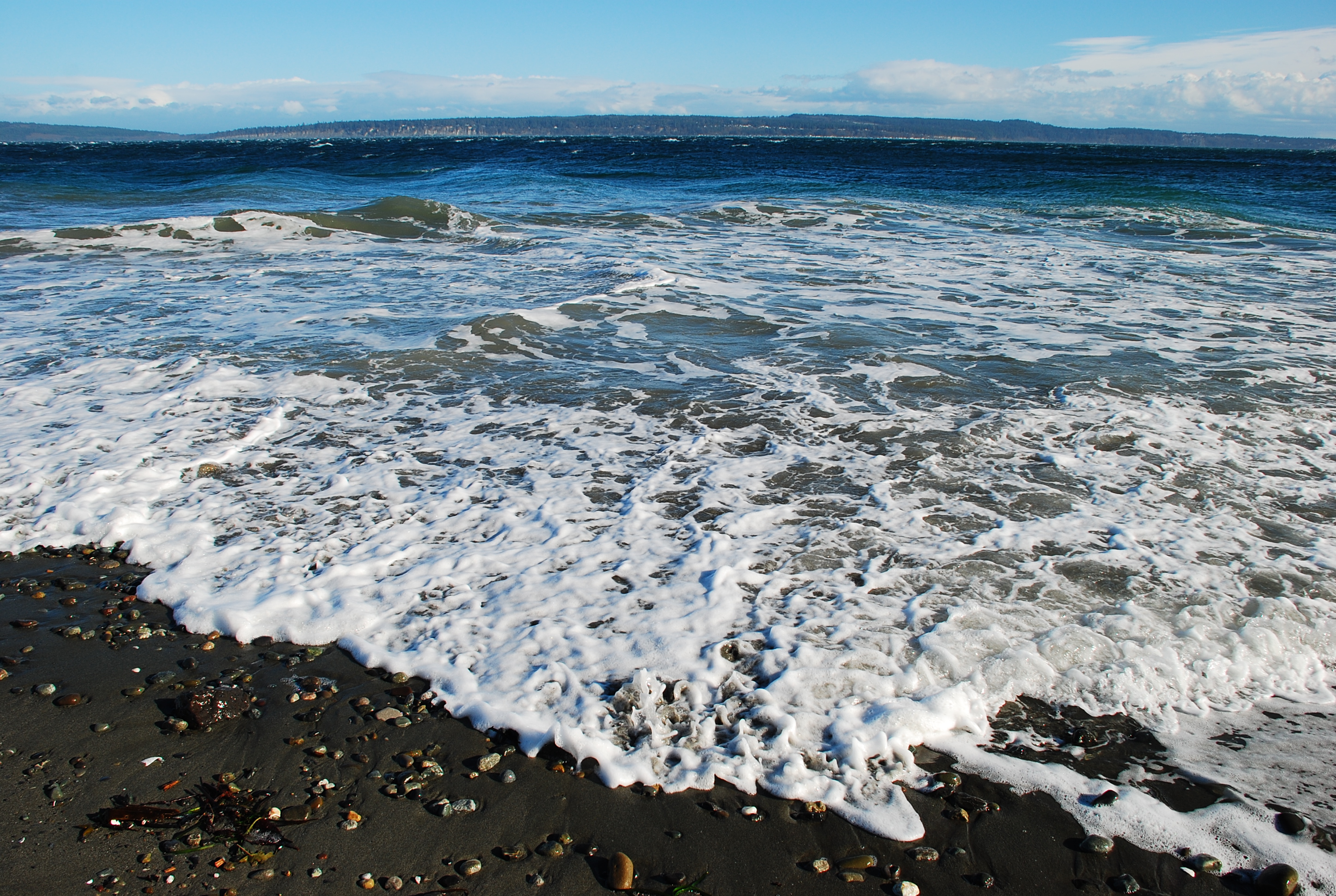 Wind, waves & tidal currents on a sunny winter day @ Marrowstone Point